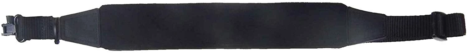 These neoprene slings are built for ultra-comfort and shock absorption. The pad has reinforced rubber laminated between the neoprene and a lycra binding on its edge with black genuine leather tabs. They have a non-slip shark skin lining, heavy-duty nylon webbing, and a tension-lock buckle for easy adjustment.