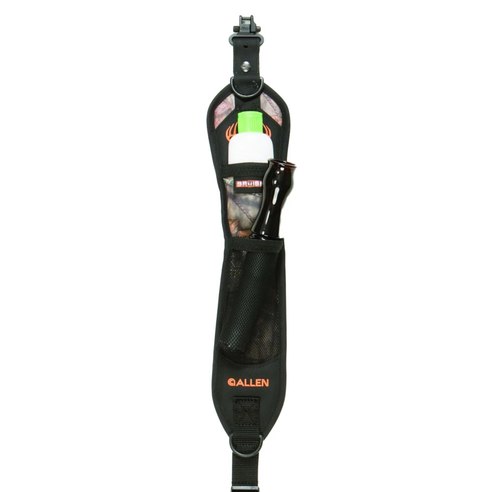 The Hypa-Lite™ Bruiser™ Sling was designed with the Deer Hunter in mind. The sling begins with ultra-durable and lightweight Hypalon construction with molded, low-density foam and non-slip backing. The front of the sling features Mossy Oak® Break-Up Country™ camo in quiet fabric, plus a stretch mesh pocket for a windicator bottle or grunt call and a small Neoprene pocket for a lens cleaning cloth or other small accessories. The body of the shoulder pad is 14-inches long by 3.25-inches wide, and the adjustable web sling is 1-inch wide. Includes D-rings to attach accessories, an adjustable ladder lock buckle and swivels tested up to 500 pounds.