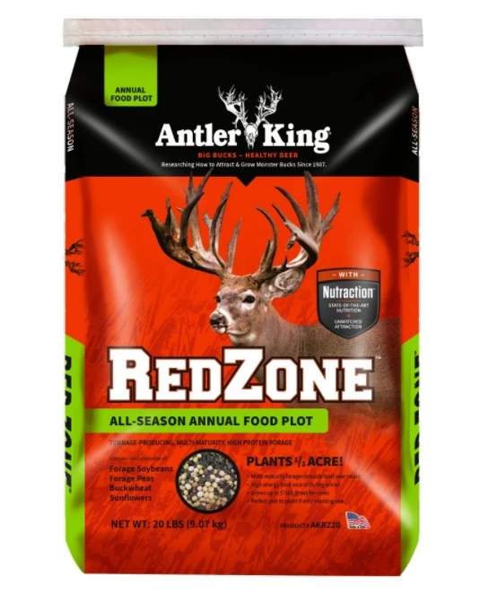 Antler King’s RED ZONE is a food plot mixed designed to offer all serious whitetail hunters a way to increase their chances of scoring on a trophy buck no matter what season they hunt! Red Zone is comprised of 2 varieties of forage and grain soybeans, a variety of forage peas, a variety of buckwheat and more! Red Zone will mature at different periods throughout the year, offering a food plot the deer will crave during the spring, summer, fall and winter. If you can only plant one food plot this year, you need to plant RED ZONE!