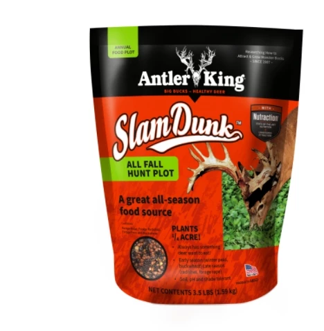 SLAM DUNK ALL FALL HUNT PLOT was designed with the hunter in mind and is blended with special varieties of warm and cold weather food sources all-in-one to attract and hold deer on your property ALL Fall and Winter. This food plot mix will completely change the way you plan your plots for next season.