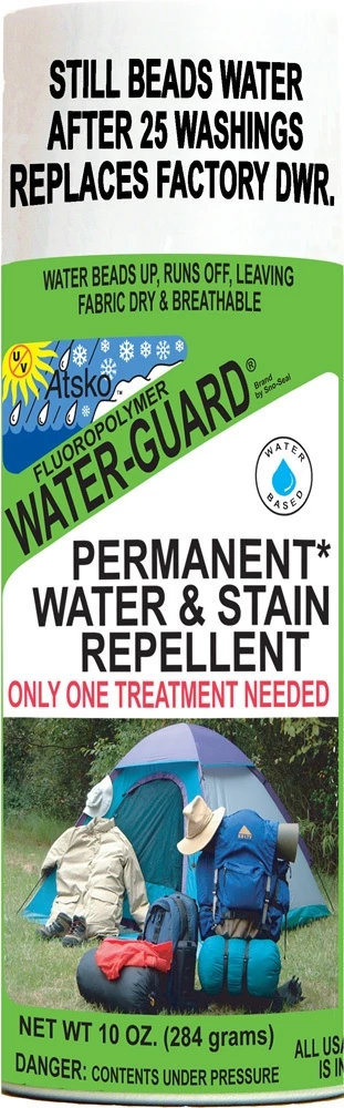 This Permanent Water-Guard is the 10 oz. Aerosol that is engineered for synthetic materials and blends like polyester, Microfibers, Nylon, Gore-Tex , Waterproof Breathables, Laminated or Coated, Fleece, Polypropylene, Blends, and Imitation Leather.