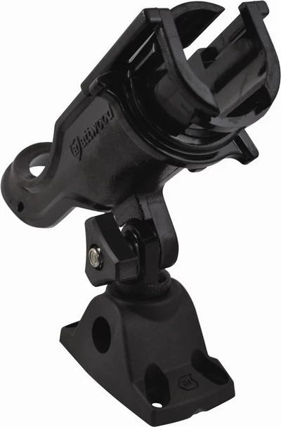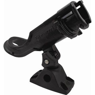 Features a new ergonomic design and easy to find rapid release latch mechanism. The large, easy-grip lock-nut offers easy adjustment. 180° vertical adjustment range for a variety of rod tip height settings. Use with casting rods and spinning rods. Includes Combo Mount.