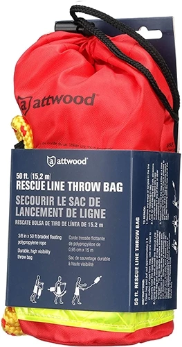 This Attwood Rescue Line Throw Bag is a valuable resource for use in water rescues. It can be thrown to a person in need of assistance to help bring them to safety. The bag is a durable red fabric bag with a wide yellow reflective strip to make the bag readily visible in low-light conditions. The bag contains 50 feet of 3/8-inch floating polypropylene line. Attwood Corporation has been an award-winning leader in engineering, testing, and manufacturing the highest quality marine products for over 100 years. We deliver safe and reliable lighting, fuel systems, water systems, seating & pedestals, swim ladders, custom upholstery, and general marine accessories that are easy to install and meet regulatory compliance.