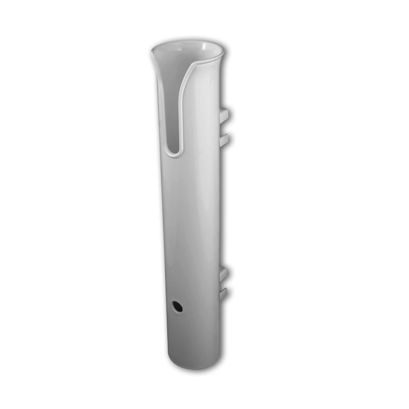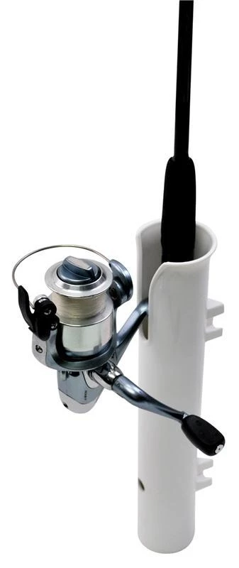 Durable white PVC tube side-mounts with molded out area to accommodate standard rod grip sizes up to 1-3/4″ and 9″ long.