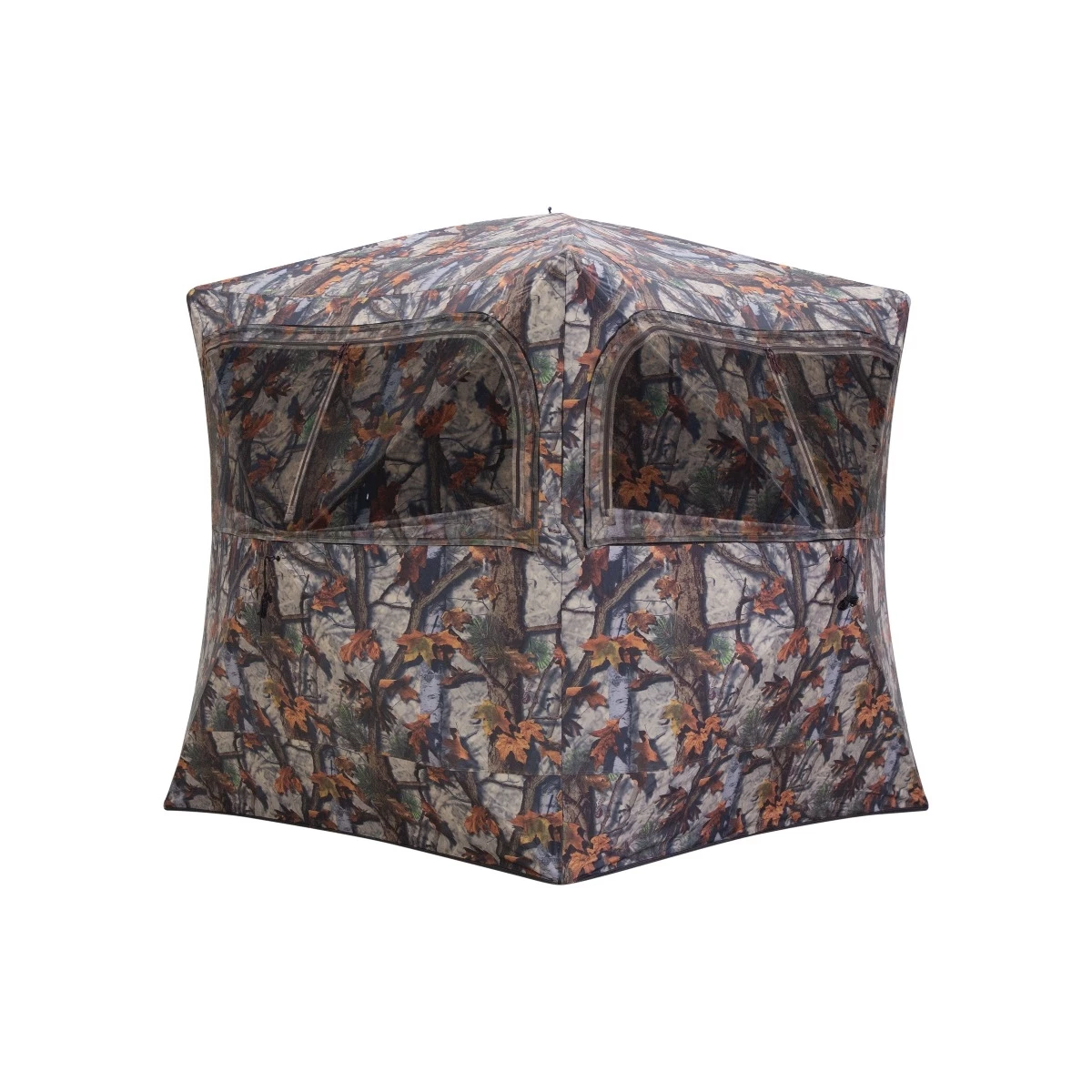 The Grounder 350 Hub Blind, a best seller, has plenty of room for small group hunts. This blind can comfortably fit three people with its 90” x 90” shooting width and the 80” height allows you to shoot while standing. When you find the perfect spot, simply pop open and you’re ready to hunt. The large, zippered windows cover three sides of the Grounder 350, offering excellent viewing and can be opened or closed in multiple arrangements to suit any hunter’s needs. The window mesh is shoot-through and can easily be replaced when needed.