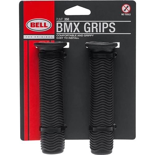 The Bell Pump 350 BMX bicycle grips provide an extra-long gripping area and narrow flange. End caps add durability and the classic style and feel fit in with the BMX culture.
