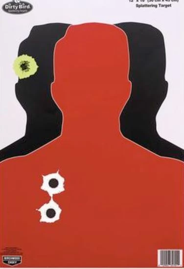 Perfect for all types of pistol action shooting. The intense splatter of chartreuse and white upon bullet impact makes holes easy to see. Dirty Bird Silhouette III Targets are a great training tool for military and law enforcement personnel. Non adhesive back allows you to affix target to your surface of choice, add notes and save for future reference.