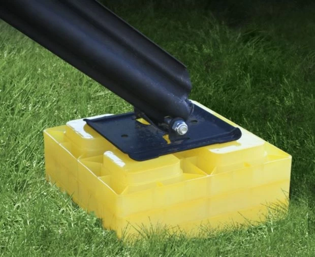 Includes zippered storage bag with handle, 4 interlocking blocks stack to the desired height for safe and easy leveling, Strong and durable construction, Solid bottom to help keep them from sinking in soft ground.