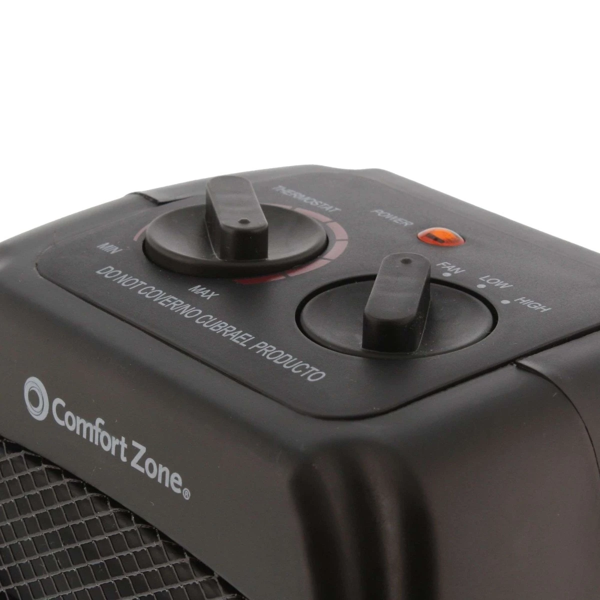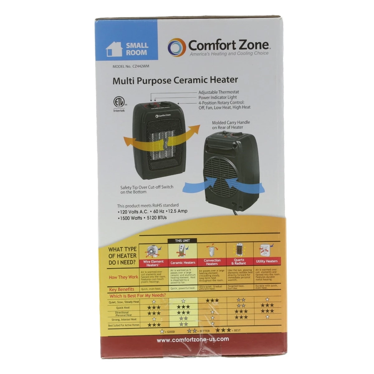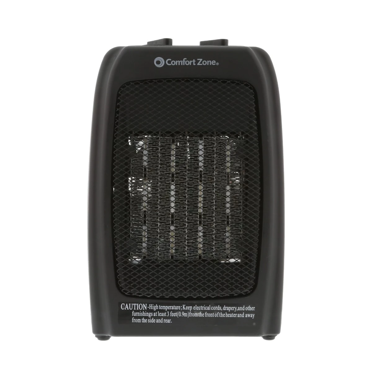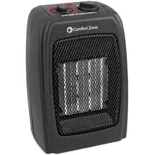 This might be a compact, portable heater but that doesn’t mean it’s lacking in power. The Comfort Zone Ceramic Electric Portable Heater features a high-performance ceramic heating element that efficiently heats small-sized room up to 800 square feet. Two heat settings, a fan only setting and an adjustable thermostat provide customized heating control. The fan-forced design delivers wide heat dispersion for even heating throughout the room. In addition to powerful heating 1500 Watt output, the heater is designed for safe use. Its advanced safety system includes a safety tip-over switch that cuts power if the heater is accidentally knocked over, a stay-cool body and an overheat protection sensor that prevents the heater from overheating. With its compact size and molded carry handle, the personal heater is easy to bring from room to room for heat wherever you need it. Save on heating costs and heat just the room you are in with this convenient personal heater.