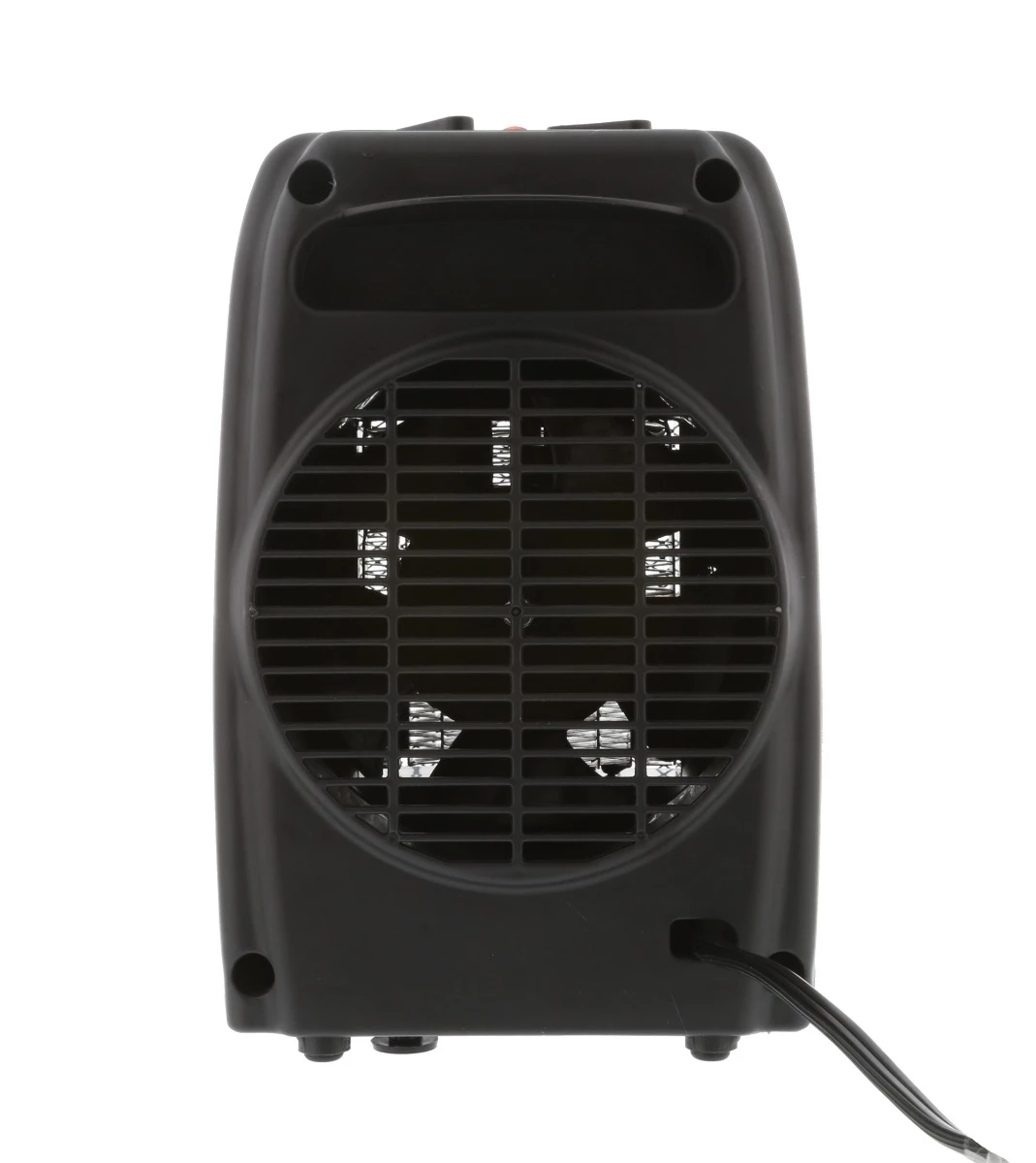 - 1500 Watt portable heater with 2 heat settings and a fan-only setting