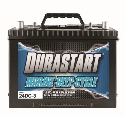 Power your boat or RV/camper with this Durastart® #24 marine deep cycle battery. Features 140 reserve capacity minutes for continuous operating time and powering of onboard electronics like depth finders, lights, small appliances, and navigation systems.