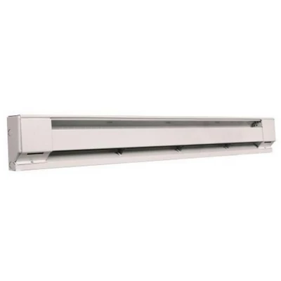 1000 Watt electric baseboard heater is designed for quiet operation – there’s no popping or pinging typically associated with baseboard heaters. Heating element combines durability of a steel tubular heater with excellent heat transfer characteristics of aluminum fins. Chimney fin directs airflow away from walls to maximize circulation. Heating Application: Wall, Baseboard, BTU Output: 2,559, Volts: 240, Amps: 4.2, Watts: 1,000, Blower Included: No, Blower (CFM): N/A, Heat Settings: 1, Thermostat Included: No, Power Cord (ft.): Must be hardwired, Remote Included: No, Thermal Cutoff Safety Device: Yes, Dimensions L x W x H (in.): 48 x 2 7/8 x 6 3/4