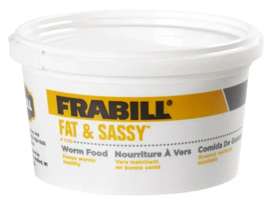 Give your live bait a boost of vitality with Frabill’s Fat & Sassy Worm Care products. Easy to use, hassle-free live bait maintenance. Fat & Sassy allows you to keep a supply of healthy live bait for extended periods, so it’s ready to go fishing when you are! Scientifically formulated bedding and food supplements designed to maximize live bait health and conditioning. Your bait will have muscles and you won’t have to feed them the spinach!