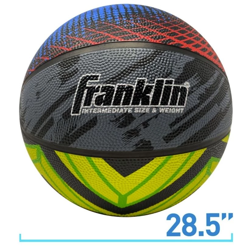 The brightly colored Intermediate Mystic Basketball is ideal for fun and competitive outdoor play. Designed with wide pro-width channels, this ball is easy to grip and shoot. The durable rubber cover is ideal to play anywhere, indoors and outdoors, on any surface. An inflation pump is included so that you can inflate the ball and play right away.