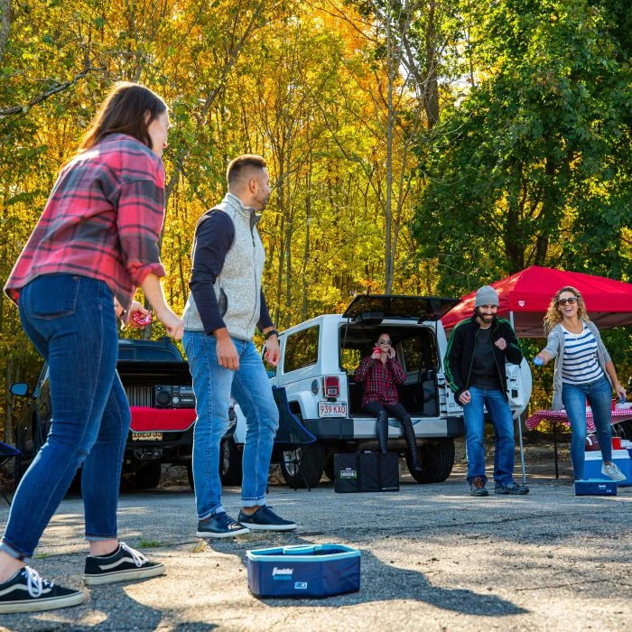 • OFFICIAL SIZE foldable washer set lets you take your game with you. Collapsible Fold and Go design makes this a fun, portable game you can play almost anywhere!