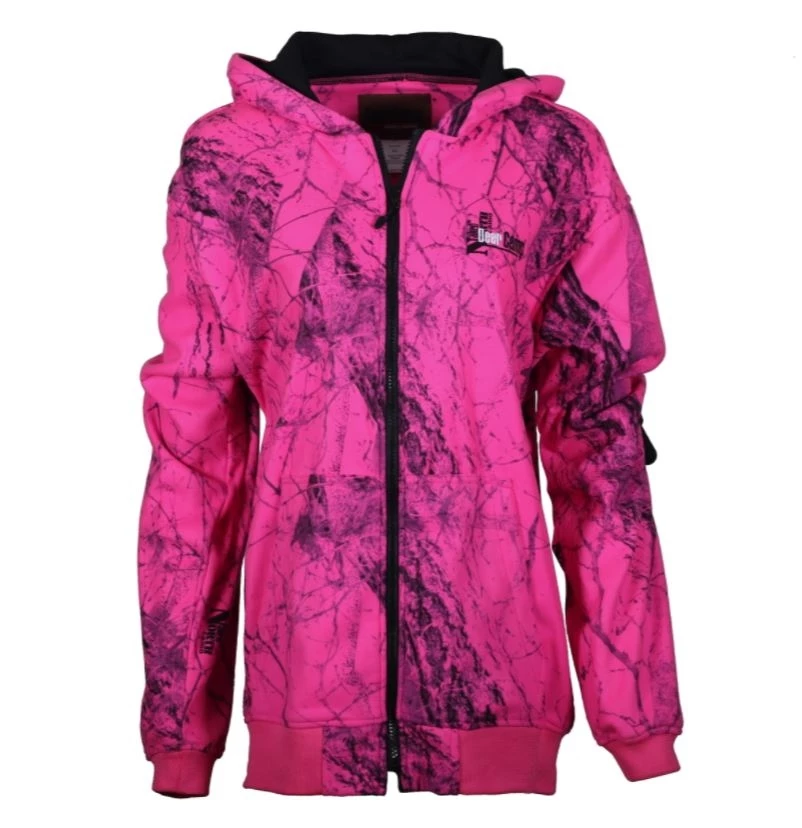 A great all around light-weight fleece full-zip hoodie! Perfect for layering or to wear on warmer days in the field. The attached hood is jersey lined for superior comfort. The hoodie also includes two side pockets and a banded waist. Blaze Pink is approved and legal in Minnesota and Wisconsin!
