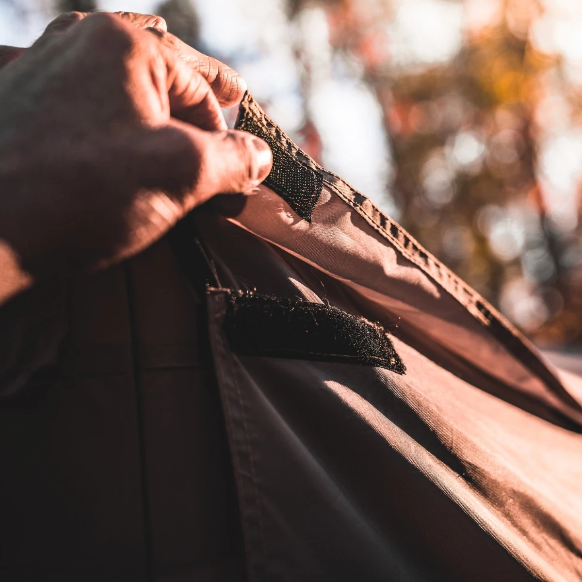 • Additional flaps secure to the top of the optional wind panels to help keep moisture out