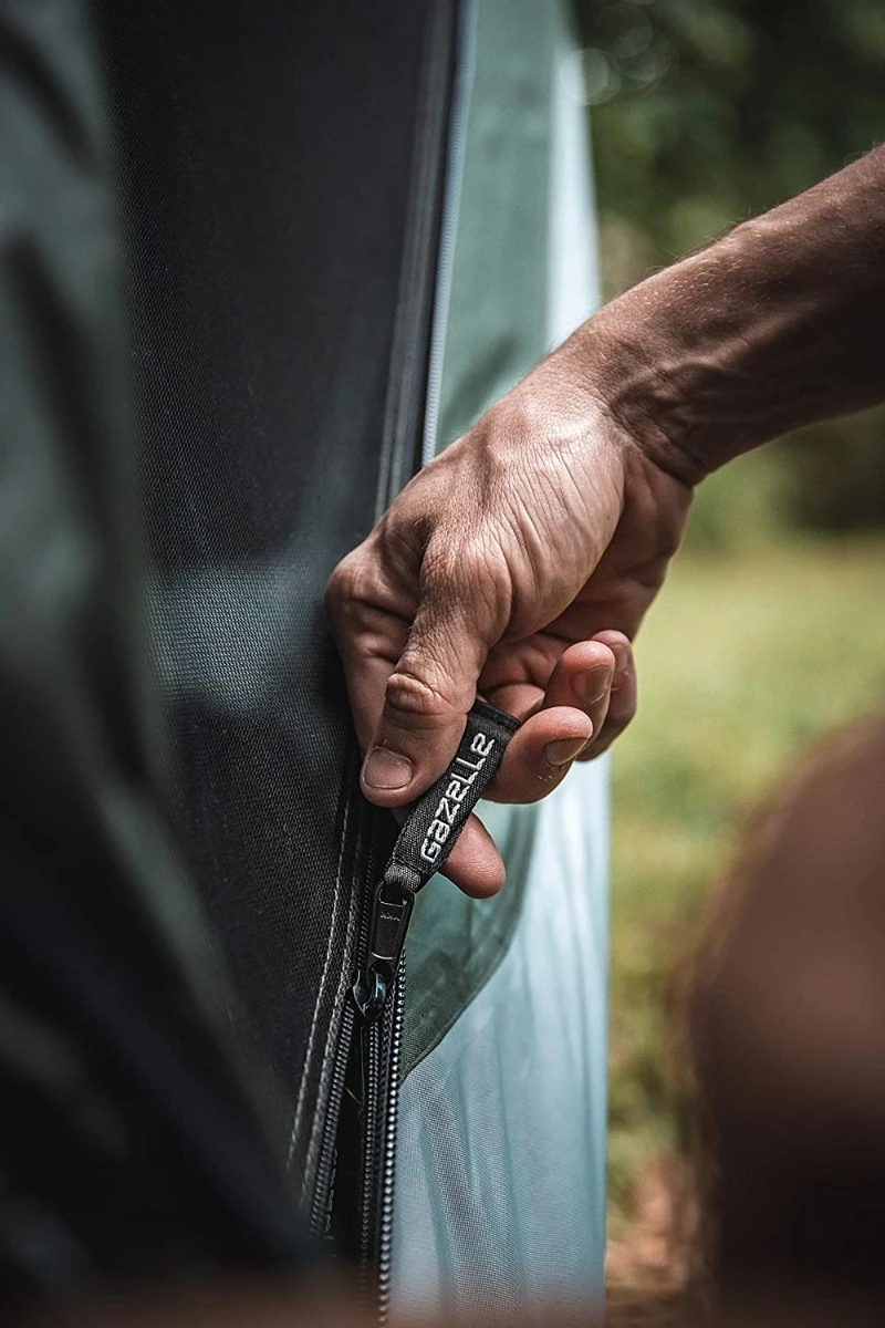 Our most popular tent, the T4, is the ultimate pop-up camping tent. This tent spaciously provides 61 square feet of floor space and stands 78” tall – sleeping four people with spare space for your gear. Other tents are tricky to assemble and built with flimsy components. The T4 comes fully-assembled and sets up and takes down in under 90 seconds. Whether you’re camping or going to an outdoor event nothing beats the T4 Gazelle™ camping hub tent.