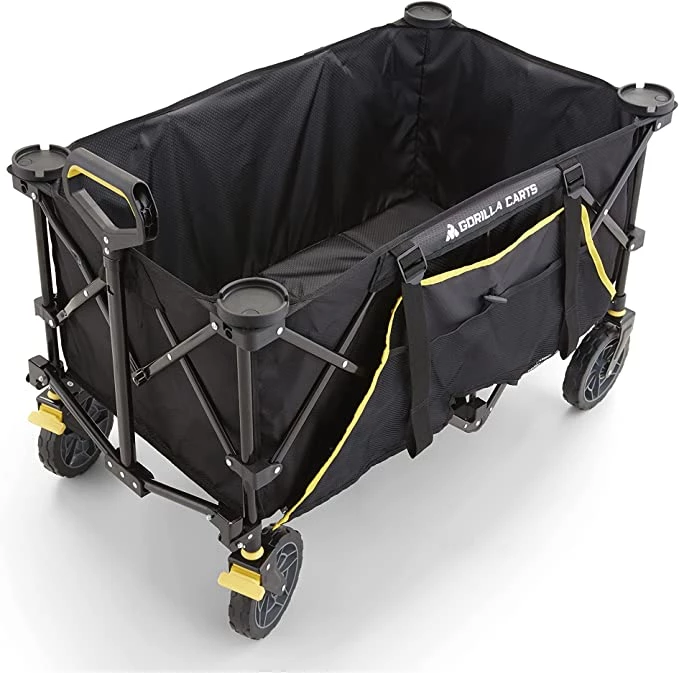 •VERSATILE: All-terrain wheels allow you to pull this portable cart on sand, gravel, grass, or virtually anywhere, plus you’ll stay refreshed with built-in cup holders in all four corners to hold your drinks