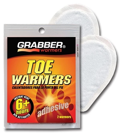 Cold toes got you blue? Grabber Adhesive Toe Warmers are the perfect everyday solution for cold toes. Featuring a thin unique rounded toe and adhesive backing, they are designed to function in the low oxygen environment of boots and shoes. Contains one pair per package,