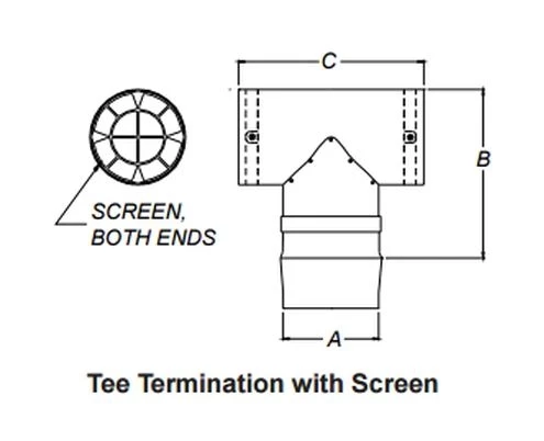 Tee Termination with Screen – Use as a termination on horizontal or vertical systems, as specified or allowed by the appliance manufacturer.