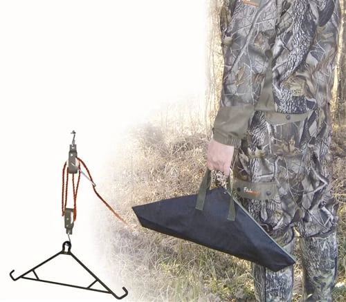 This gambrel will make it easier for one person to hoist their deer for cleaning, skinning, butchering or cooling. We have also added a convenient carry bag. This bag will help keep all the components and rope from getting tangled up and is great for off-season storage.