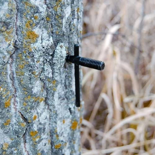 The Better Trail Camera Holder utilizes the same “user friendly” installation procedures as our better line of bow hangers. Simply screw the mounting screw into the tree where you want the trail camera to face (A). Next place the camera holder mounting bracket onto the threaded stud of the mounting screw and install and tighten wing nut (B). It’s that easy. Now screw the trail camera onto the threaded end of the camera mount so it is facing away from the adjustment arm and screw the camera lock up and against the bottom of camera to hold that position. Camera head rotates 360 degrees and tilts up and down 120 degrees for perfect camera placement. This simple, compact and sturdy design provides a dependable means for supporting all trail cameras with the 1/4″ x 20 threaded insert on the bottom.