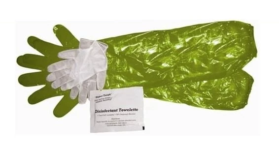 This package features a pair of shoulder-length gloves and a pair of form-fitting gloves.