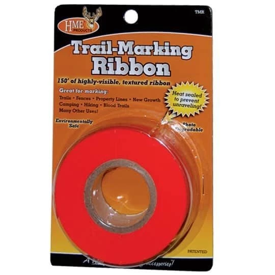 There are hundreds of potential uses for HMR Trail Marking Ribbon. Use it to mark fences, property lines, blind locations, trees to be removed or saved, food plots, camp sites and more. This environmentally safe and highly visible bright orange ribbon is photo degradable. A heavy duty heat seal on both sides of the ribbon prevents unraveling during use or storage.
