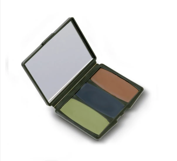 Blend into your surroundings with the Camo-Compac® 3 Color Woodland Makeup Kit. The makeup won’t dry, crack, or come off with rain or perspiration, yet removes easily with Hunters Specialties Camo-Off® makeup remover pads or soap and water. This essential hunting gear includes mud brown, flat black, and leaf green colors in a pocketsize case with built-in mirror.