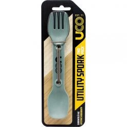 Functionality. The utensils you eat with should just work. Often referred to as “three-in-one”, the Utility Spork is anything but a compromise. Micro serrations smoothly cut through protein rich foods and stab the perfect bite. Those holes aren’t just for weight reduction. Each Spork Set includes a Reusable Tether which can be clipped to a bag, used to hang dry, or stack and cinch multiple utensils together for transport.