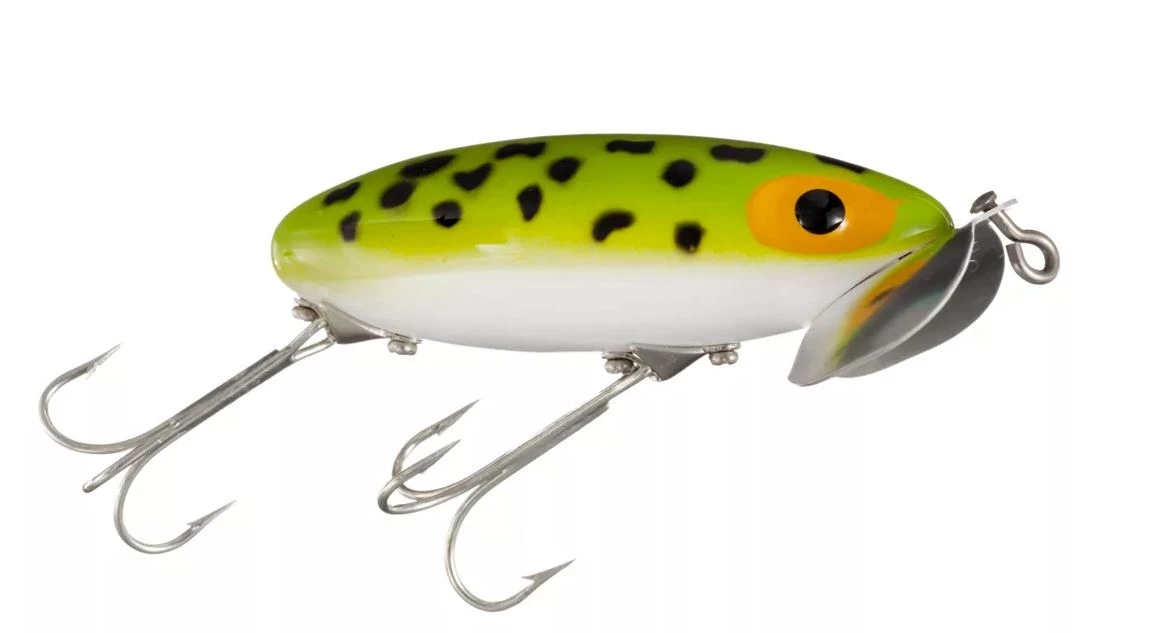The Arbogast Jitterbug Lure is the most-respected topwater lure for fishing at night, but the Arbogast Jitterbug lure also draws explosive strikes throughout the day too! The Jitterbug lure features a double-cupped lip that’s placed at the correct angle to produce a loud, rhythmic, surface-busting sound. This sound that the Jitterbug lure produces is irresistible to bass, pike, and other gamefish. Whether you’re fishing at night or during the day, try the Arbogast Jitterbug Lure to draw in your next strike.Â