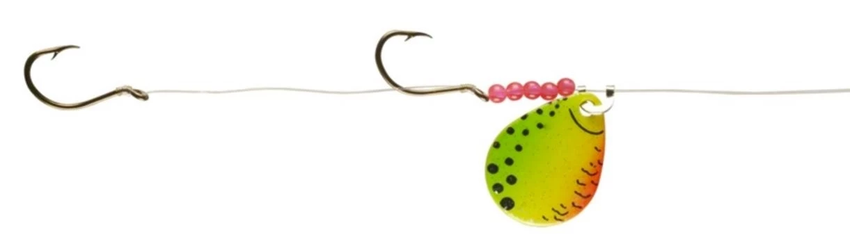 Blade that emulates baitfish colors. The Lindy Bead patterns simulate secondary