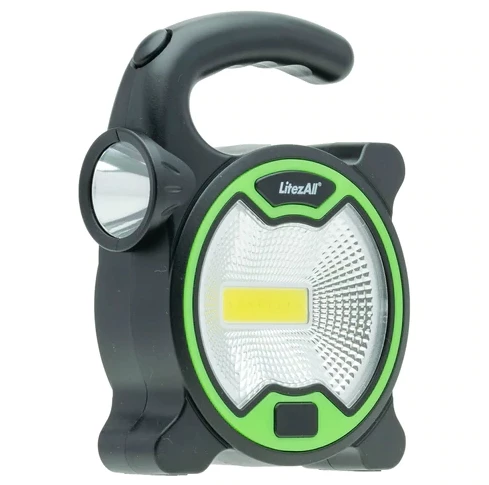 The LitezAll ORB is a compact work light / task light / flashlight. Don’t let its compact size fool you. The orb has a COB LED wide beam light on its side and a narrow beam flashlight in the front. Simple pushbutton operation selects either mode and off.