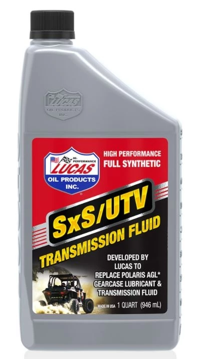 Lucas SxS Transmission Fluid is blended from premium synthetic base oils only (API Groups III & V), combined with shear stable synthetic polymers, a high-quality additive package that includes anti-wear, anti-oxidants and corrosion inhibitors to produce a truly superior SxS transmission fluid. Lucas SxS Transmission Fluid was designed specifically to meet the requirements of Polaris vehicles’ Transmissions/Gearcase, including ACE, Sportsman, Ranger and RZR* and may be used safely as a substitute for AGL.