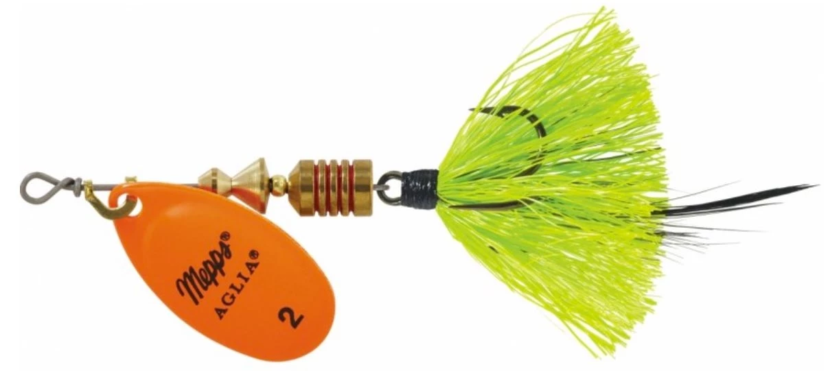 The Mepps Aglia spinner is the original French spinner. It is the World’s #1 Lure. More trophy fish have been caught on the Mepps Aglia than any other lure. The Mepps Aglia is extremely popular with fishermen world-wide because it will catch just about any freshwater fish and many species of saltwater fish.