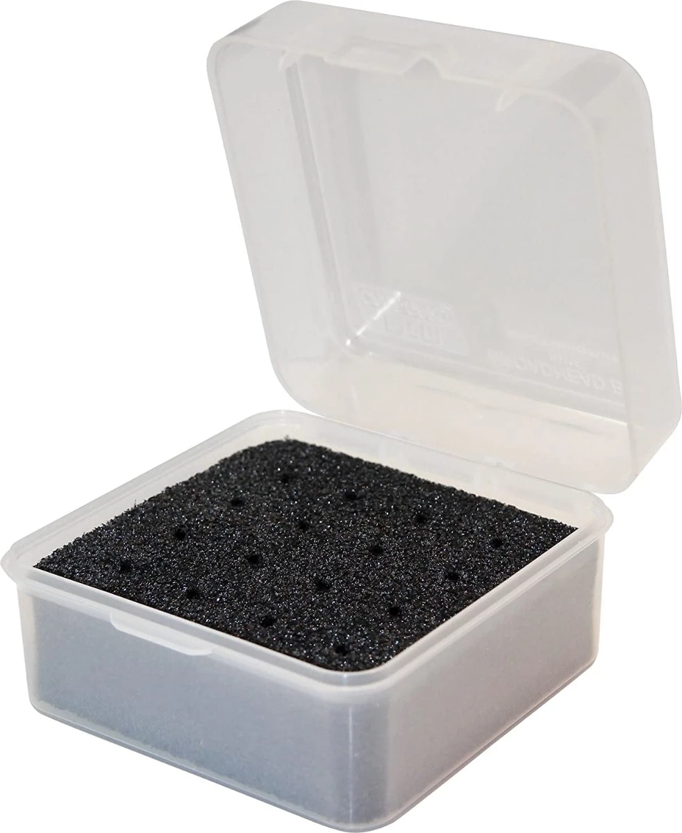 - foam insert has 16 precut holes to securely hold broadheads in either up or down position