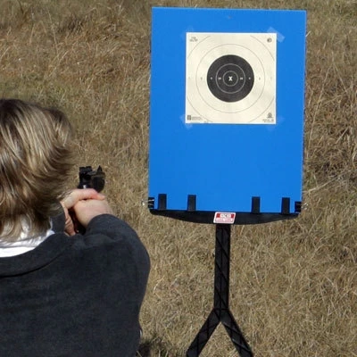 All Jammit™ Target Stands can take a few hits, 22 to 45 ACP, and still be used. We have a stand that has been hit 22 times with 223 and is still working fine. Although a few hits in the vital area will take it out. So never let anyone shoot the stand itself. Due to the nature of these products MTM’s normal Guarantee will not apply to target stands and target backer. We guarantee that it will be free of manufacture defect when you receive it, only. Do not use for shotgun patterning. Works on non-rocky ground.