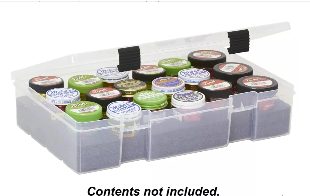 The Plano® Bait Container StowAway® securely holds up to eighteen 1.5 oz. jars, allowing you to keep your liquid bait organized and mess-free. With the addition of powerful scent attractants, liquid baits have become difficult to store and transport. Now, the Plano Bait Container StowAway changes all that with a convenient design that’s winning over anglers one after the other.