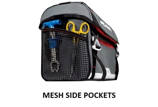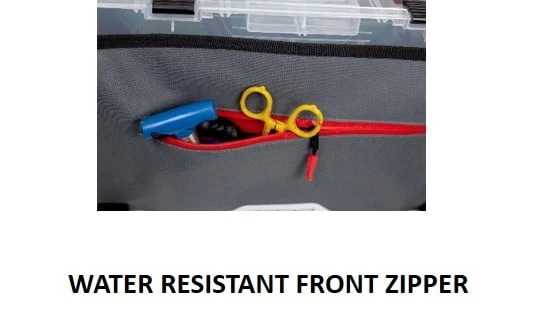 The zipperless top panel allows for quick access to the two StowAway boxes included. Buckles are used for fastening the top cover over the StowAways, making it easy to access or close up. A front pocket is accessed with a water-resistant front zipper, for the protection of essential items.