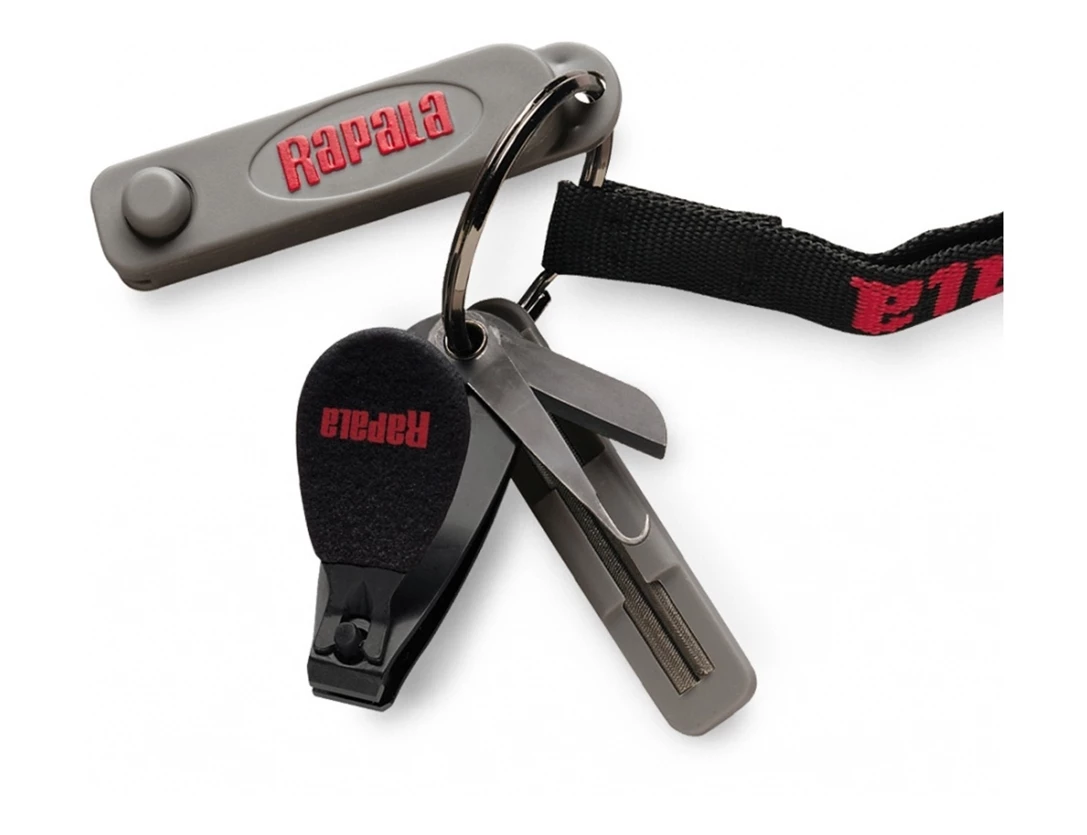 These “use ’em all the time” tools are ready for action. Lightweight clipper is perfect for cutting line and cleaning up stray ends of knots. Also on clipper is Rapala® lure tuning tool, handy line pick and cutting knife. It also includes a retractable aluminum oxide stone hook sharpener and jig punch that makes quick work cleaning out painted line ties on your favorite jigs. Can be worn on the neck with lanyard and large split ring provided.