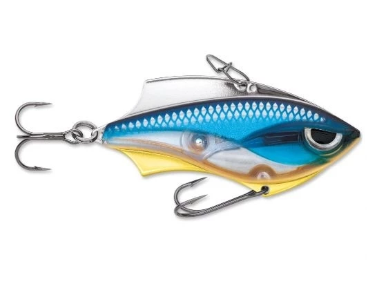 The Rap-V Blade is the perfect balance of metal, plastic and Rapala® expertise. This extremely versatile bait produces instant vibration on the lift or retrieve. The Rap-V can be worked in variable depths with a wide range of techniques; cast out, make contact with bottom, lift & let fall in a yo-yo style retrieve. For vertical presentation, drop to bottom and twitch for a jigging action. Two line tie positions; front line tie for a slower fall swimming action, rear line tie for a faster fall, head down action. The Rap-V Blade delivers the right action and attitude and is a perfect choice for any species of gamefish.