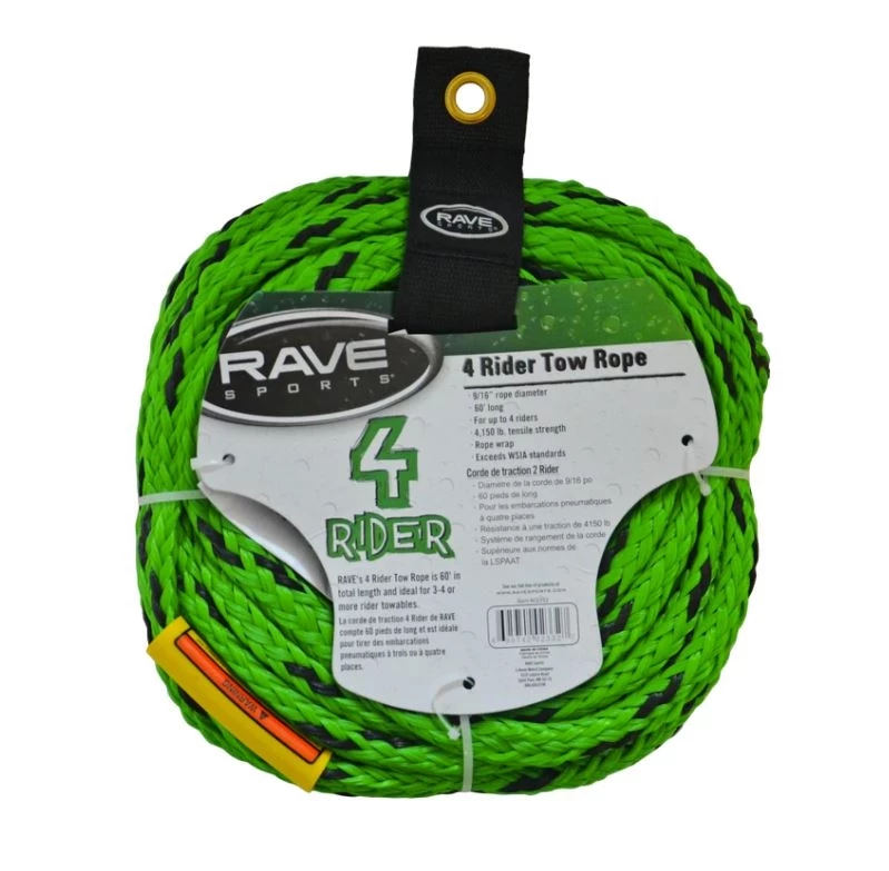 RAVE’s 4 Rider Tow Rope is 60′ in total length and ideal for 3-4 rider towable tubes.