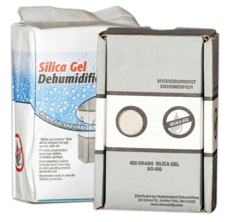 Absorbs moisture without using any electricity. Changes color to indicate when it requires drying out (done in your kitchen oven).