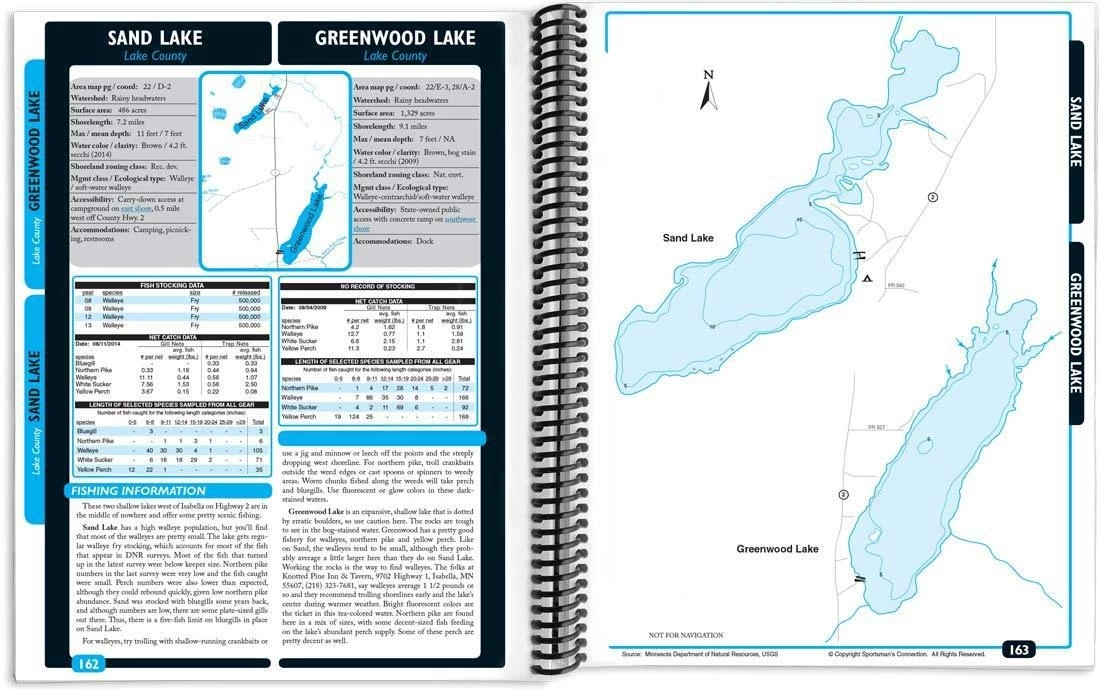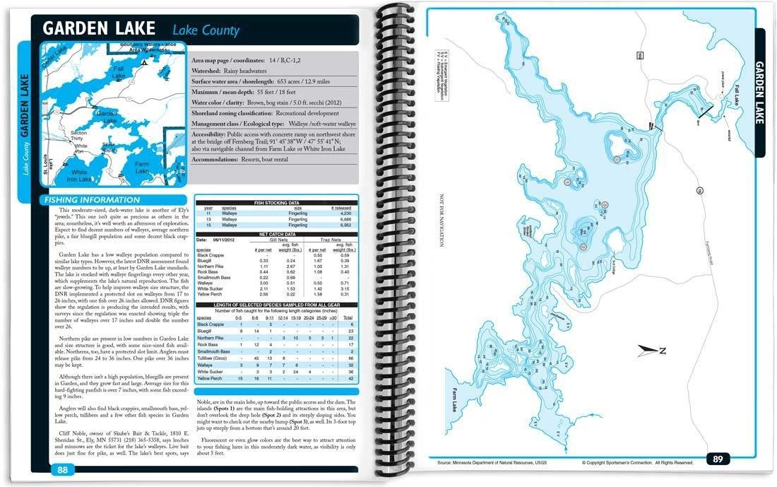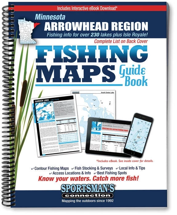 Newly updated, the Minnesota Arrowhead Region Fishing Map Guide is a thorough, easy-to-use collection of detailed contour lake maps, fish stocking and survey data, and the best fishing spots and tips from area experts.