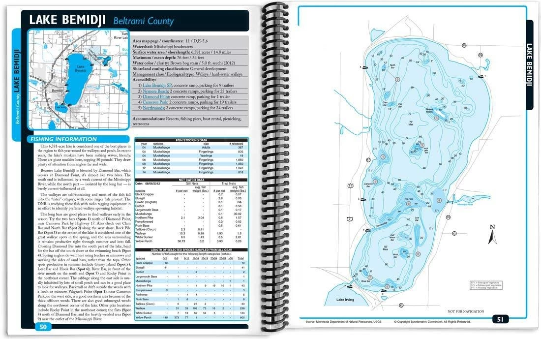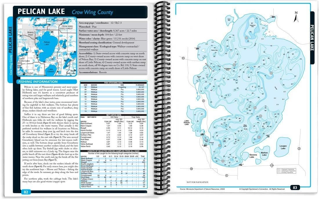 Looking for a comprehensive listing of Minnesota’s very best fishing lakes all in one place? Look no further than Minnesota’s Best Lakes Fishing Maps Guide Book. The name says it all. This 240-page, 8 1/2″ x 11″ spiral-bound volume showcases Minnesota’s biggest and best inland fishing lakes. You get the big names like Mille Lacs, Leech, Winnibigoshish and Red, but also notable are those slightly smaller – but equally good – fisheries such as Saganaga, Bemidji, Big Stone and many others over 3,000 acres. Included for each lake is the latest DNR fish stocking and survey information, as well as fishing tips and fishing information from locals who know these waters well. Also included with each lake is a contour lake map, many of which feature marked fishing spots. If you’re looking for the ultimate resource to the best Minnesota fishing lakes, this is the book for you!