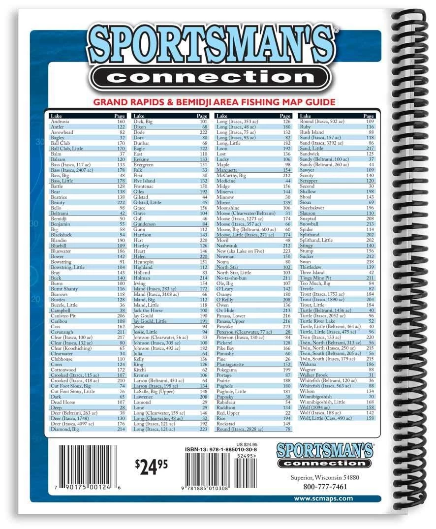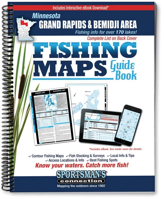 Newly updated, the Northern Minnesota Grand Rapids and Bemidji Area Fishing Map Guide is a thorough, easy-to-use collection of detailed contour lake maps, fish stocking and survey data, and the best fishing spots and tips from area experts.