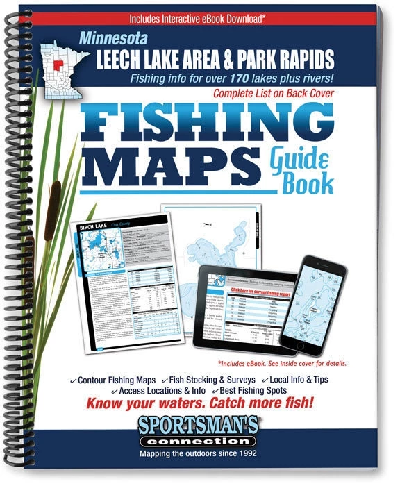 Newly updated, the Minnesota Leech Lake Area & Park Rapids Fishing Map Guide is a thorough, easy-to-use collection of detailed contour lake maps, fish stocking and survey data, and the best fishing spots and tips from area experts.