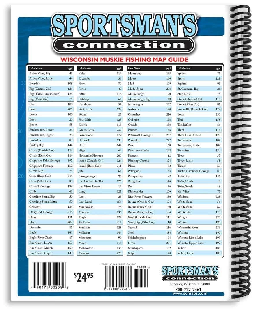 Newly updated, the Wisconsin Muskie Fishing Map Guide is a thorough, easy-to-use collection of detailed contour lake maps, fish stocking and survey data, and marked fishing spots and tips from some of the state’s top muskie experts.