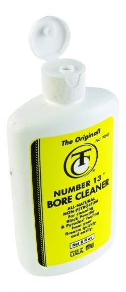 An all natural bore cleaner which contains no petroleum based additives and is compatible with Natural Lube 1000 Plus. Number 13® will quickly and efficiently remove any trace of residue or fouling without eliminating the seasoning which has coated the surface of the bore. Number 13® is non-toxic and FDA food grade rated. 8oz. bottle